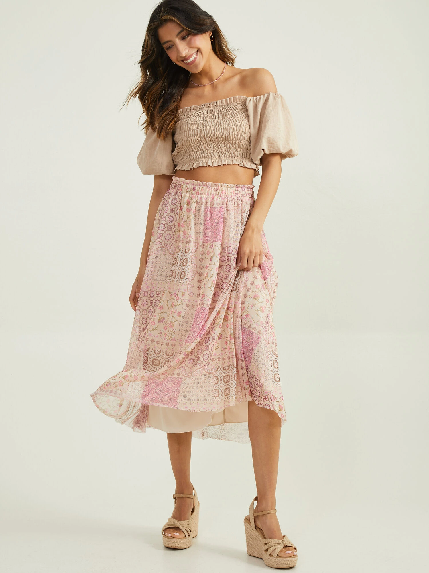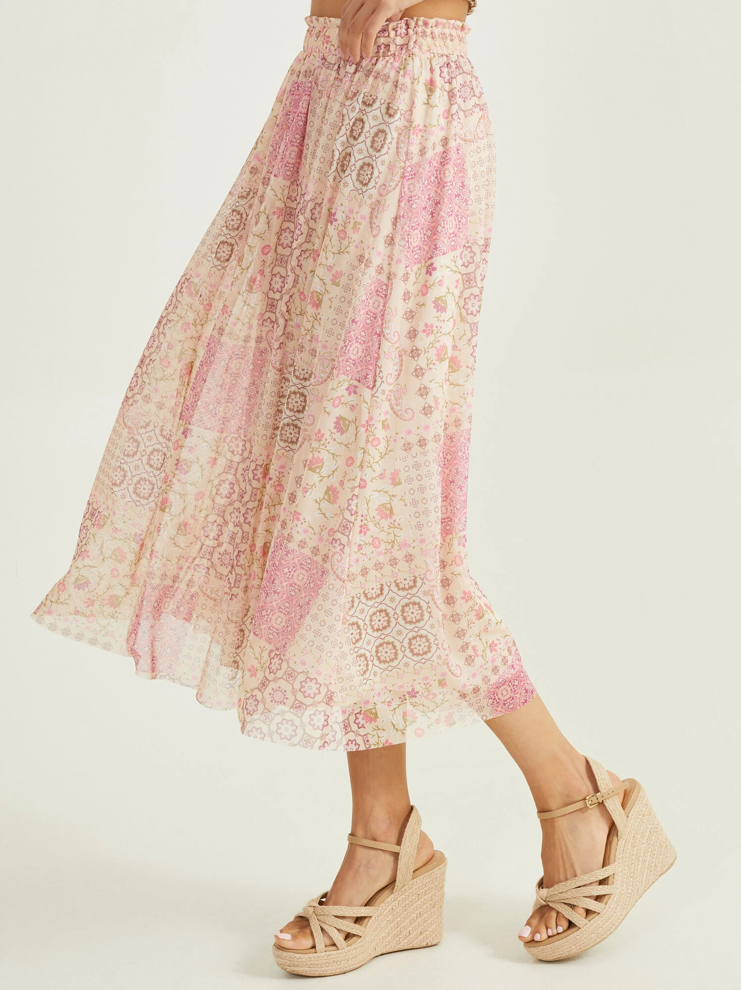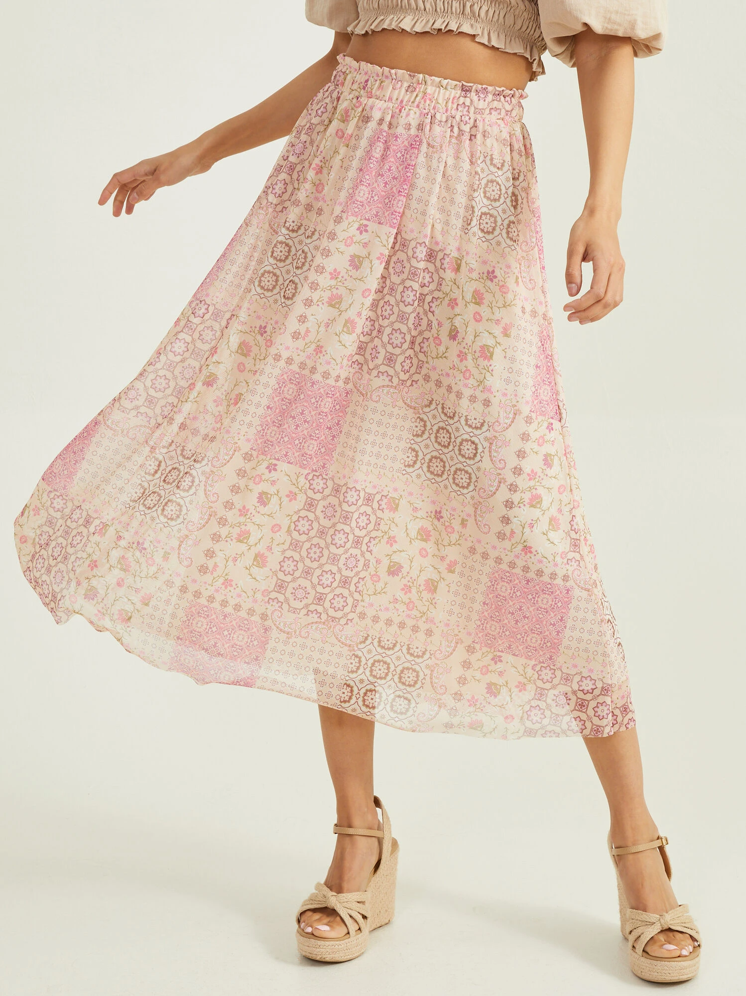 This gorgeous printed mesh midi skirt will have you feeling cool and confident all day long. With a breezy, flowy fit and an elastic waistband, this light and airy skirt looks great paired with a tank or t-shirt and your favorite sandals.