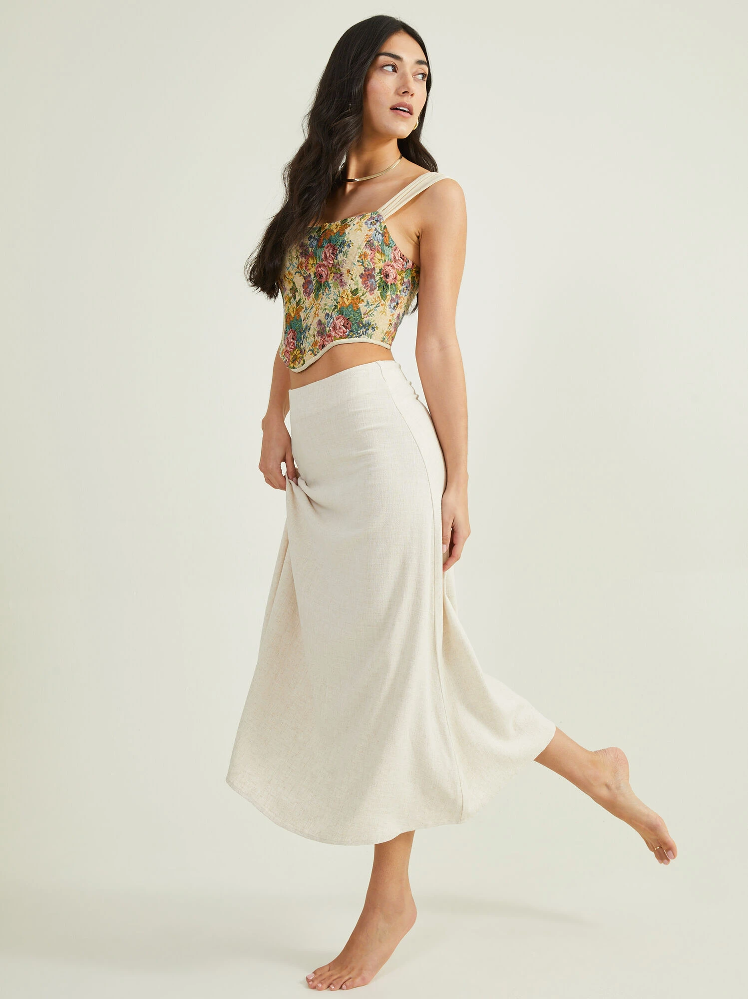 This is the perfect linen midi skirt for the warmer weather. The light, flowy material ensures you will be comfortable while looking stylish, and the back zipper makes for the best fit possible. Pair with a white bodysuit and the Alix Tortoise Aviator Sunglasses for the perfect look for a day trip with your friends!