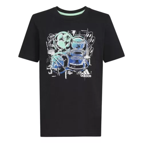 Which sport is his favorite? All of them. This boys’ adidas t-shirt has a bit of edge, thanks to graffiti-inspired details. It’s easy to wash and wear over and over.
