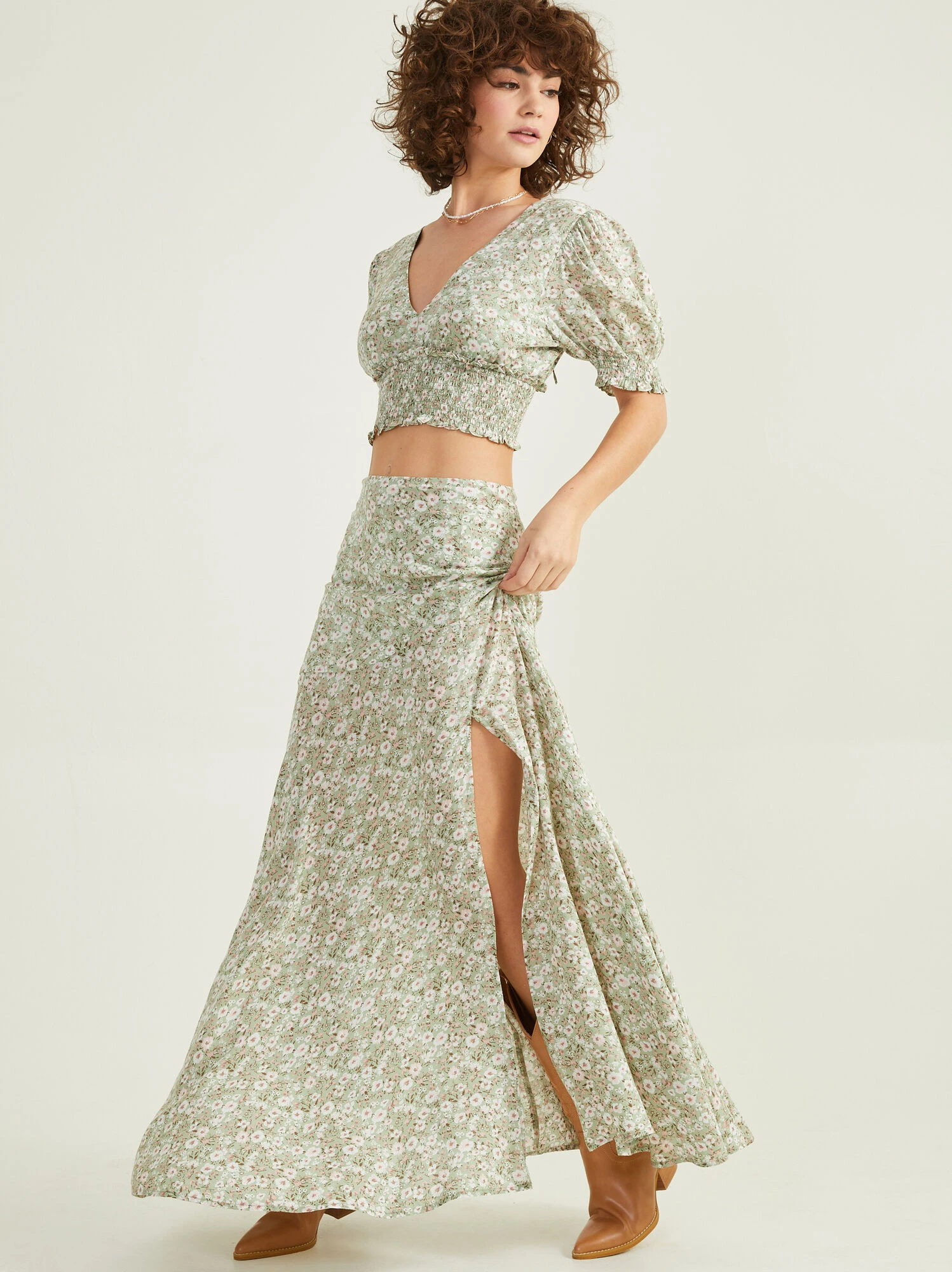 Get inspired by this ethereal maxi skirt; its whimsical appeal makes it genuinely gorgeous. The maxi length and soft floral material make for a comfortable fit keeping you confident no matter where you wear it. Pair it with the matching Freya Floral Crop Top to complete the most stunning look.