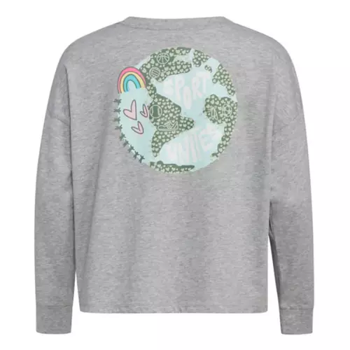 Give her a girls’ t-shirt with a global feel. A spirit of unity inspires this adidas tee. She’ll show off all the good vibes with an uplifting graphic on the back. Extra room in the shoulders and a silky soft feel make it comfortable.