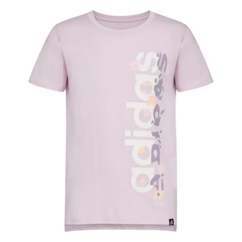Good vibes only. That’s the spirit behind the graphics on this girls’ adidas t-shirt. Love, unity, peace and flowers give her bonus points for style. Every detail is about comfort from soft cotton to a hem that’s slightly longer in back.