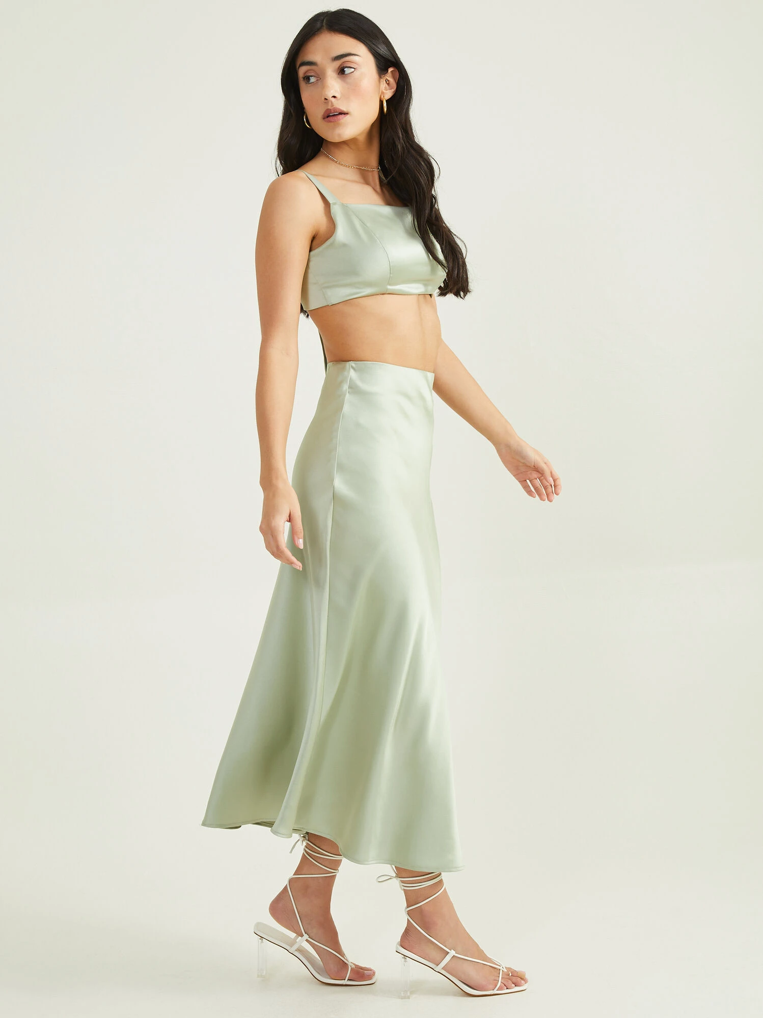 The perfect satin midi skirt for the warmer weather or layered with a sweater, the Luci Satin Midi Skirt Set looks perfect either way! We are obsessed with the luxurious, soft satin material and the back zipper that ensures the best fit for you. Pair with the Luci Satin Tie Back Tank for a monochrome look that is sure to amaze.