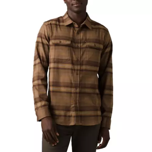 The prAna Great Valley Flannel for men is made from a recycled polyester stretch blend yarn dye plaid flannel fabric. Design details of this slim fit flannel include double chest patch pockets with flap and button closure, an inner lined yoke, UPF50+, and a moisture wicking finish.