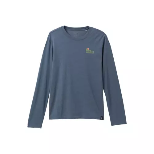 The prAna Tides LS Tee for men is a bluesign® approved product made from an organic cotton/recycled polyester blend light weight jersey fabric. This standard fit graphic long sleeve is a Fair Trade Certified product.