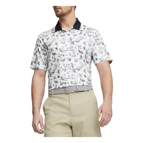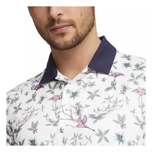 The flora and fauna of the lagoon adorn this breathable, moisture-wicking polo. Featuring MATTR fabric technology, this top is designed to fight back against all environmental hooks and slices the day might bring you. Extreme conditions are no match against this breathable fabric.