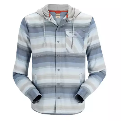 Crafted from a planet-conscious blend of organic cotton and recycled polyester, welcome to the Santee Flannel Hoody — a lightweight woven flannel, with the warmth of a knit hood and traditional snap-front fit for wearing on and off the water.