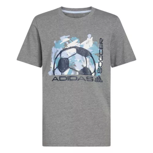 When’s kickoff? This boys’ adidas short sleeve t-shirt is for kids whose minds are on the pitch. It’s made from soft heathered fabric, with soccer graphics on front.