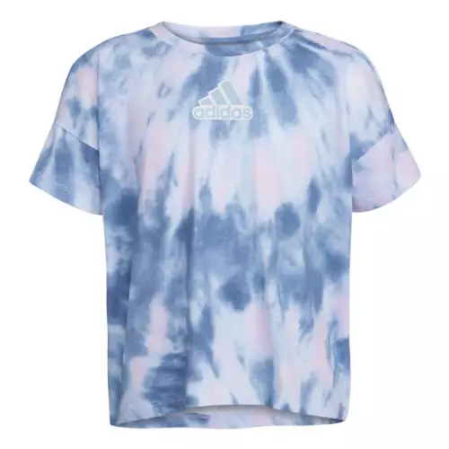 Feels like summer. This girls’ adidas t-shirt turns up the fun with an eye-catching allover print. It’s cut loose with drop shoulders for a casual, comfy feel. 100% cotton jersey feels soft against her skin.