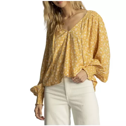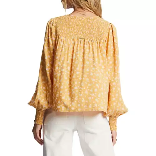 With its dramatic blouson sleeves and smocked yoke with matching ties, this relaxed floral top is worthy of a night out, or at least a coffee date.
