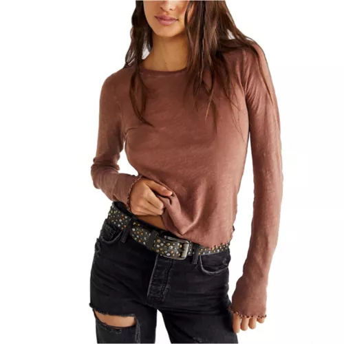 Stay stylish with the Women’s Free People Be My Baby Long Sleeve T-Shirt. This Free People shirt offers a trendy look that can transition throughout your day. With a flattering cut, you’ll love the Women’s Free People Be My Baby Long Sleeve T-Shirt.