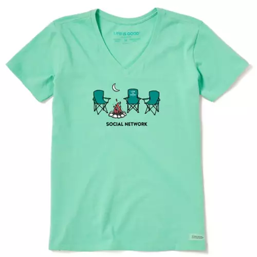Women’s Life is Good Social Network Camp Crusher Lite V-Neck T-Shirt