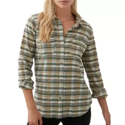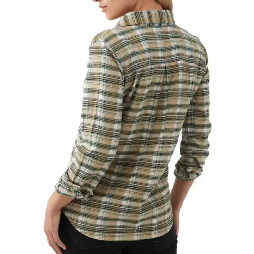 This is a long sleeve flannel shirt that has a lightweight feel, front button closure and classic plaid print.