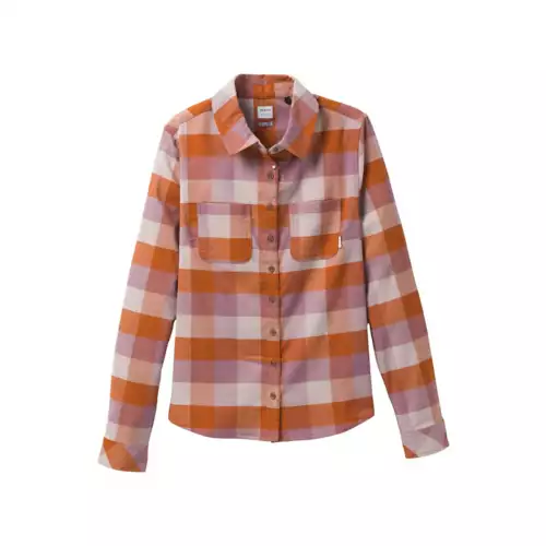The prAna Meadow Run Flannel for women is made from a recycled polyester stretch woven flannel fabric. Design features of this standard fit shirt include a traditional button down silhouette, a classic collar, buttondown placket and closure cuffs, chest pockets, self loop at center back yoke, and hidden internal pocket at the wearer’s right side seam.