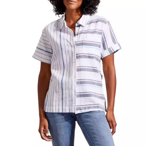 A structured style for a flattering fit? Yes! Lightweight fabric for breathable comfort? You got it. We’re loving this short-sleeve button-up blouse with room to breathe courtesy of textured, linen-blend fabric featuring a fun mix of prints that instantly update this classic silhouette.